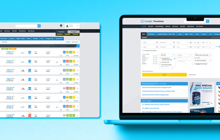 Cockpit Flights propose un contenu complet pour les agents : une variété unique de tarifs mondiaux dans plus de 100 pays et des tarifs exclusifs grâce à nos nombreuses interfaces directes et connexions NDC.